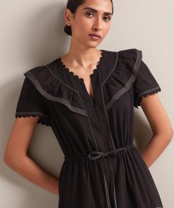 Nessa Cotton Seersucker Maxi Dress – Black